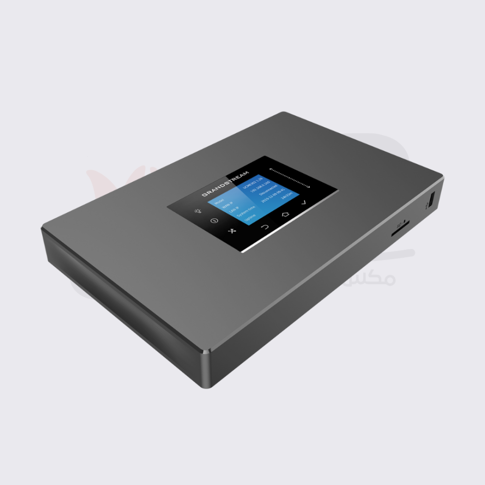 اكتشف سنترال UCM6300A القوي، الذي يدعم برمجة سنترال جراند ستريم لما يصل إلى 250 مستخدمًا. يأتي هذا الجهاز بتصميم أنيق بلون رمادي داكن، مع لمسة نهائية ناعمة تضفي عليه مظهرًا عصريًا. الشاشة الواضحة في المنتصف تعرض المعلومات بشكل مريح، مما يسهل التعامل مع النظام.
