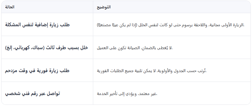 - طلبات زيارة متكررة لنفس المشكلة بعد معالجتها.